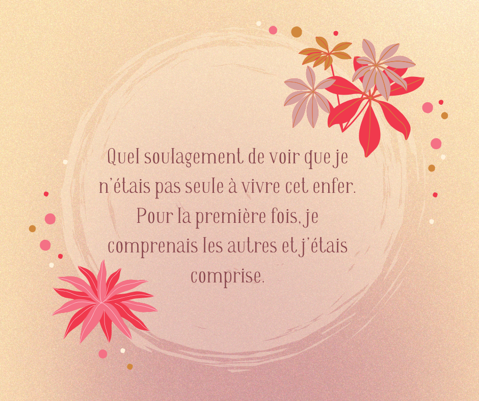 Quel soulagement de voir que je n’étais pas seule à vivre cet enfer. Pour la première fois, je comprenais les autres et j’étais comprise.